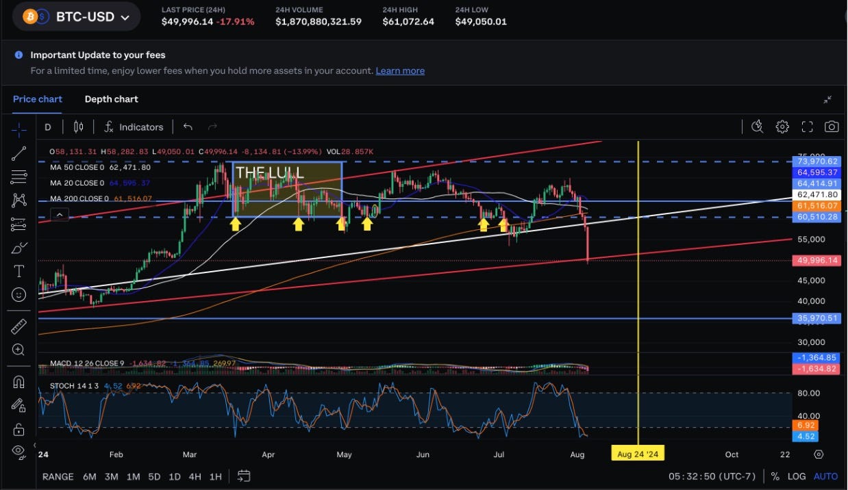 BTC just hit my bottom range support line. As I have announced earlier, I am now moving to a 200% position with BTC at $50,000.00, by deploying the Treasuries that I sold.